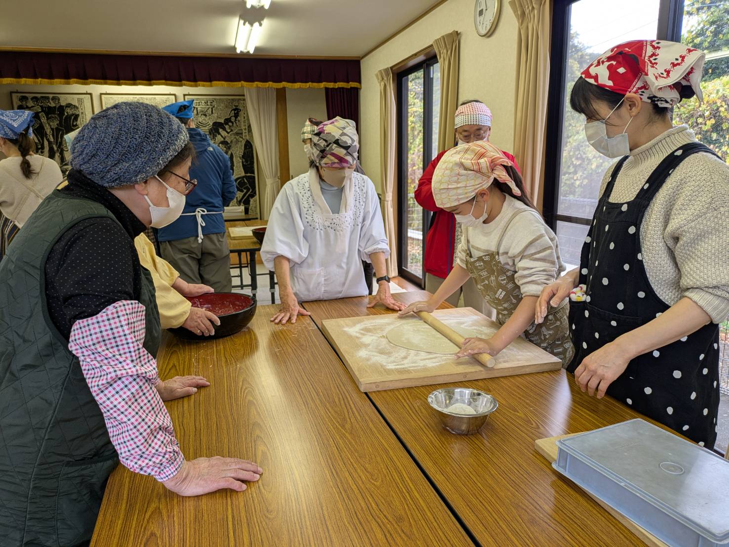 <そば打ち体験(活動紹介)、実施場所:日当公民館、実施日:12月14日(日)11:00~13:00>