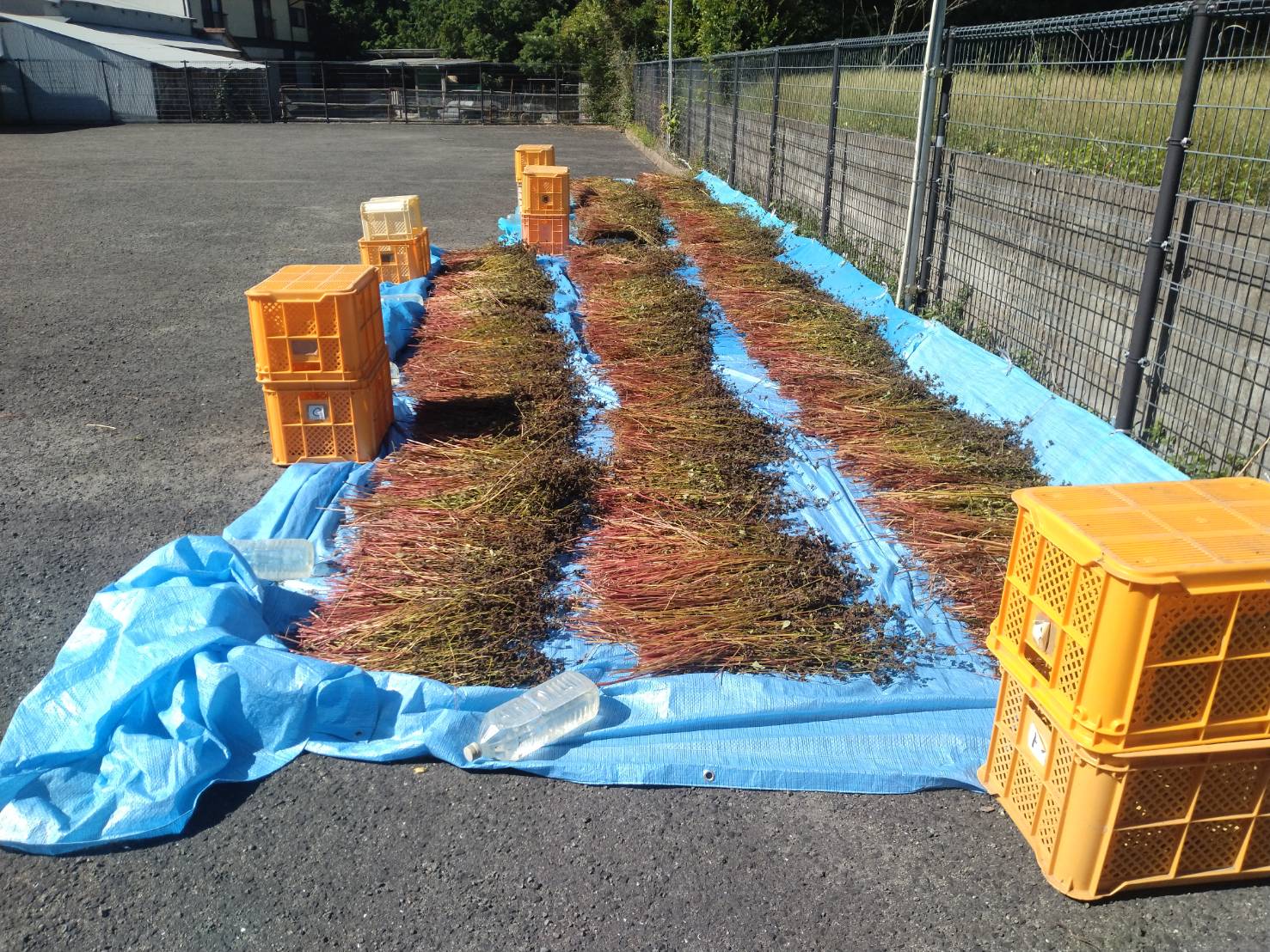 11名の参加で、そばの実の収穫を行いました。後日、公民館駐車場にシートを広げ、約1週間の天日干しを行いました。
