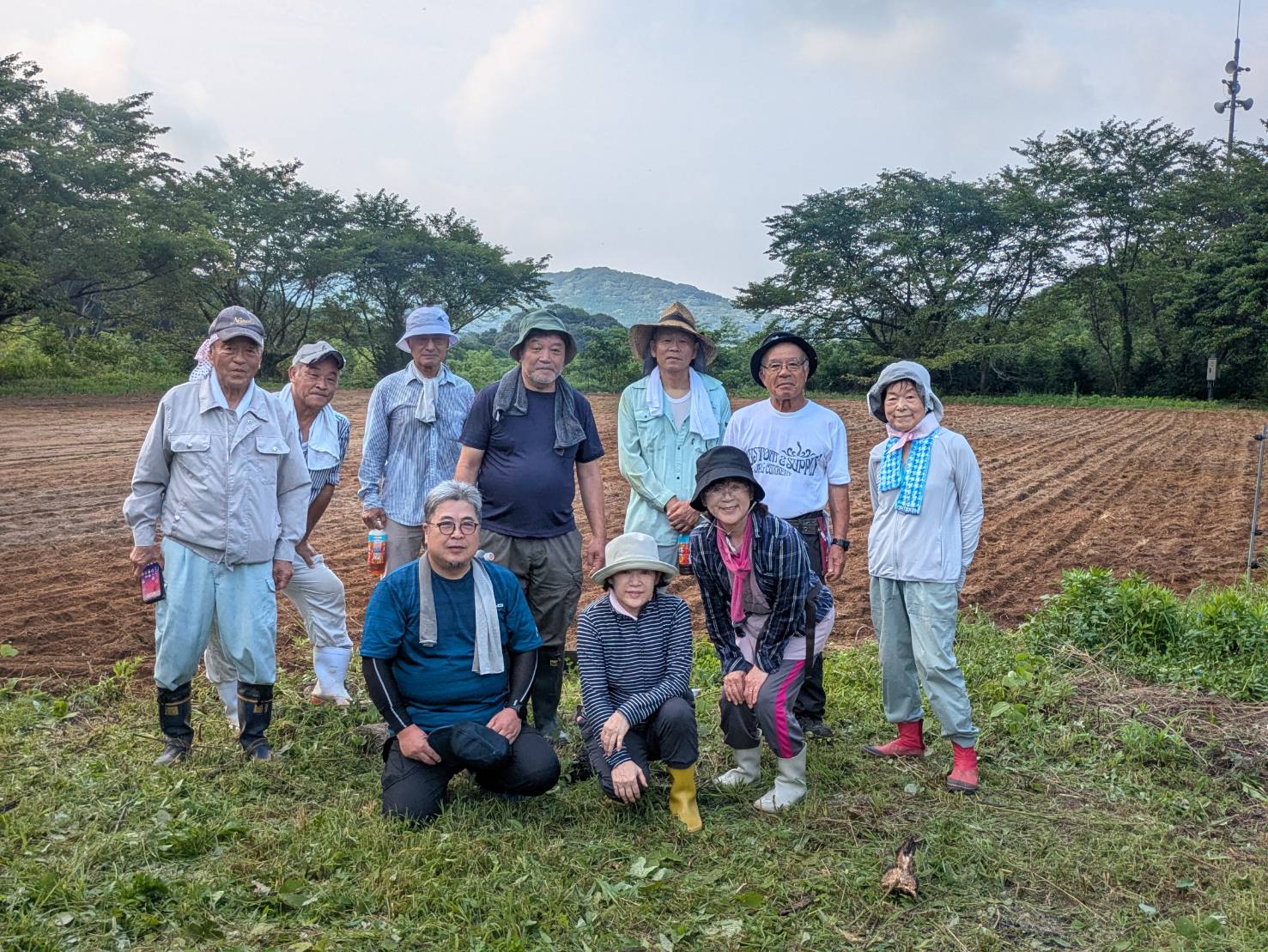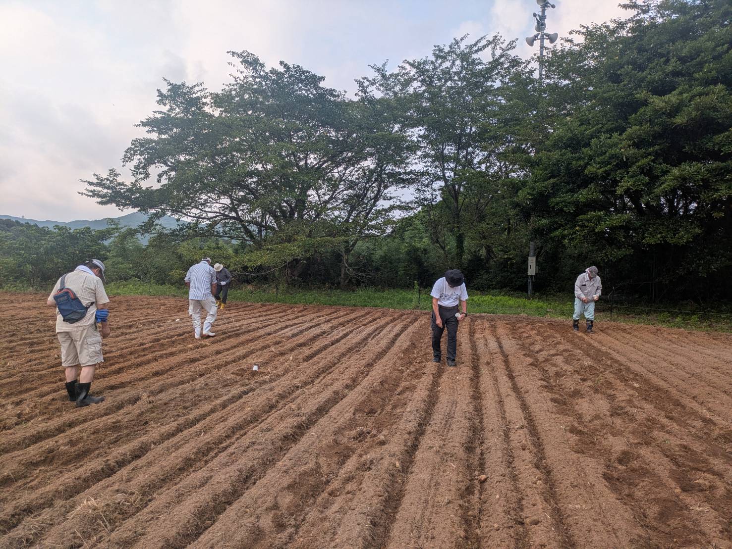 <そばの種まき(活動紹介)、実施場所:日当公民館横グラウンド、実施日:8月17日(日)8:30~9:00>